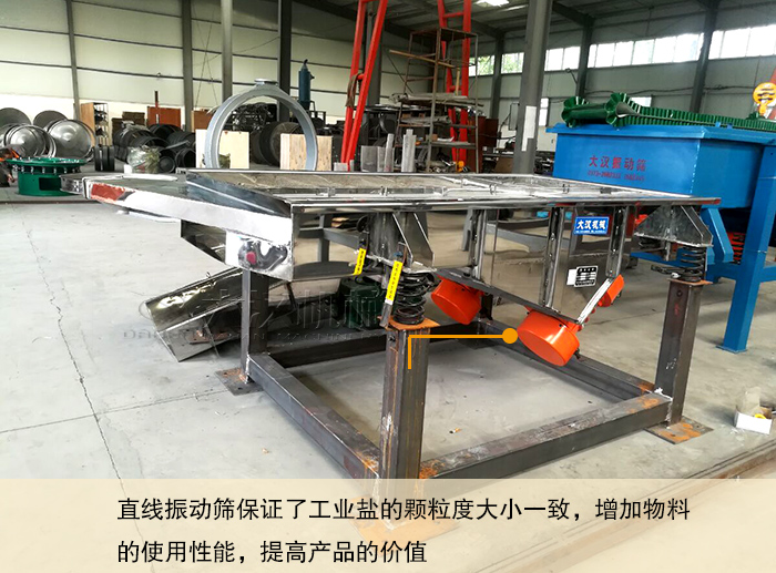 以上就是在工業(yè)鹽生產(chǎn)線所使用的直線振動(dòng)篩的介紹,直線振動(dòng)篩的效果好!保證了工業(yè)鹽的顆粒度大小一致,增加物料的使用性能,提高產(chǎn)品的價(jià)值。