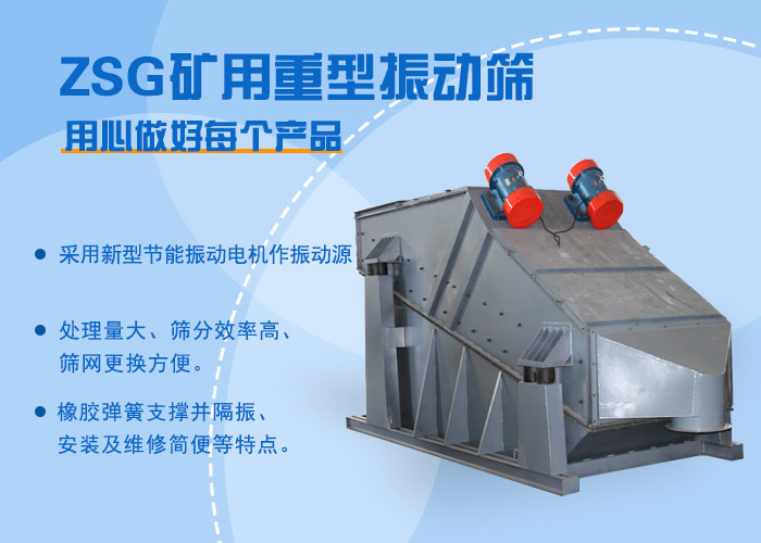 zsg礦用重型振動篩是大漢機械專為大產(chǎn)量篩分需求的用戶自行研制的一種新型、高效的篩分設(shè)備,主要用于冶金、礦山、煤炭、建材、電力、化工等行業(yè),該機采用新型能耗低振動電機或激振器作振動源,橡膠彈簧支撐并隔振,具有處理量大、篩分效率高、篩網(wǎng)更換方便、安裝及維修簡便等特點。
