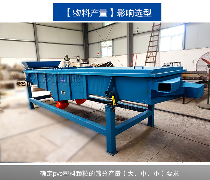 pvc塑料顆粒直線振動篩的三大選型因素:物料特性、過網(wǎng)目數(shù)、產(chǎn)量要求。