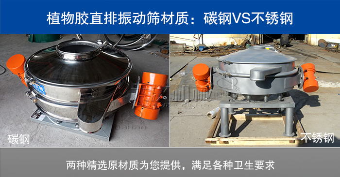 植物膠篩分可用的直線篩有兩種材質(zhì):碳鋼、不銹鋼;碳鋼材質(zhì)的植物膠1200型直排振動(dòng)篩熱處理和機(jī)械性能好,同時(shí)價(jià)格便宜,但是長(zhǎng)時(shí)間的使用會(huì)發(fā)生腐蝕、生銹等問(wèn)題,不適合用于對(duì)衛(wèi)生行業(yè)要就較高的物料和企業(yè);而不銹鋼材質(zhì)耐酸耐堿、防腐防銹、衛(wèi)生,廣泛用于化工、食品、醫(yī)藥等行業(yè)。根據(jù)植物膠物料特性,大漢推薦您使用不銹鋼材質(zhì)的1200型直排振動(dòng)篩進(jìn)行篩分。
