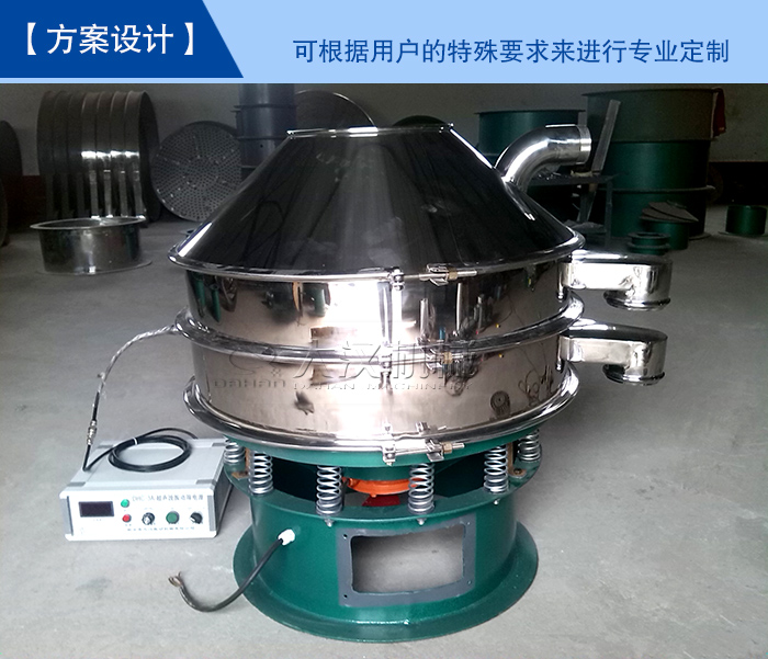 【方案設(shè)計(jì)】—— 這是大漢機(jī)械在標(biāo)準(zhǔn)型號上延伸的定做方案,可根據(jù)用戶的特殊要求來進(jìn)行專業(yè)定制(如:框體、底座加高,進(jìn)料口加料斗,出料口加閘門等)為您打造專屬的貴金屬粉末超聲波振動篩。