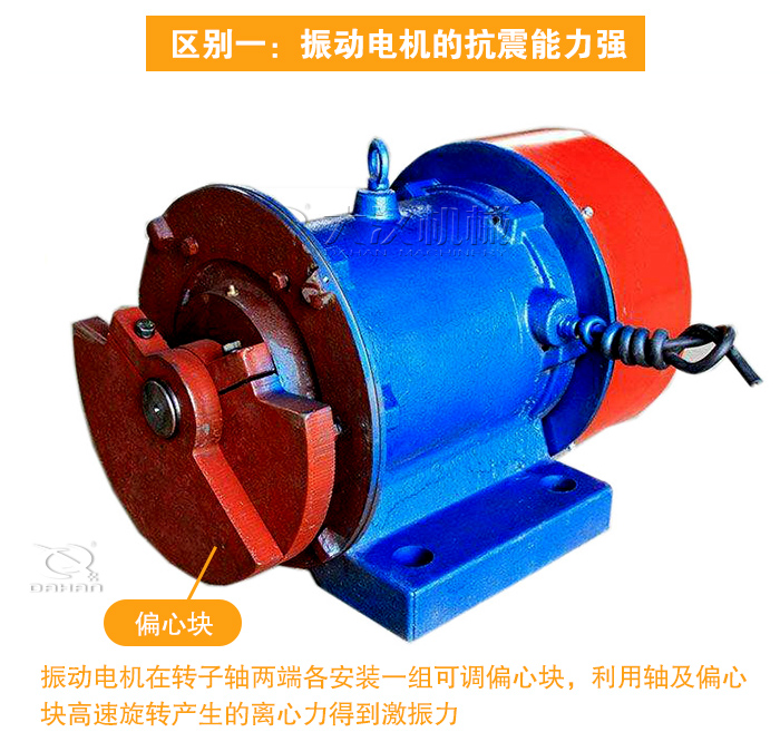 振動電機和普通電機的內(nèi)部結(jié)構(gòu)相同。主要區(qū)別是振動電機在轉(zhuǎn)子軸兩端各安裝一組可調(diào)偏心塊,利用軸及偏心塊高速旋轉(zhuǎn)產(chǎn)生的離心力得到激振力。振動電機比普通電機的機械和電氣方面都要求有可靠的抗震能力。同樣功率等級的振動電機的轉(zhuǎn)子軸要比同級別普通電機的軸粗得多。