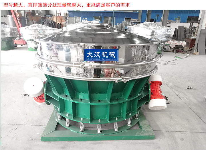 不同型號(hào)的直排篩單位時(shí)間內(nèi)處理物料的能力不同,需要根據(jù)您的具體要求,我們大漢會(huì)向你推薦合適的直排篩型號(hào)。型號(hào)越大,直排篩篩分處理量就越大,更能滿足客戶的需求。