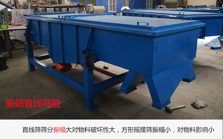 物料在直線篩的篩網(wǎng)上作直線跳躍運(yùn)動(dòng),物料朝一個(gè)方向運(yùn)動(dòng),振動(dòng)幅度大,在跳躍和振動(dòng)的兩者力下,物料很容易發(fā)生形態(tài)的變化,對(duì)物料的破壞性大;而方形搖擺篩也叫做平面回轉(zhuǎn)篩,機(jī)械通過(guò)搖擺使物料在篩網(wǎng)上循環(huán)做橢圓形軌跡運(yùn)動(dòng),物料不需通過(guò)振動(dòng)就可以達(dá)到篩分的目的。